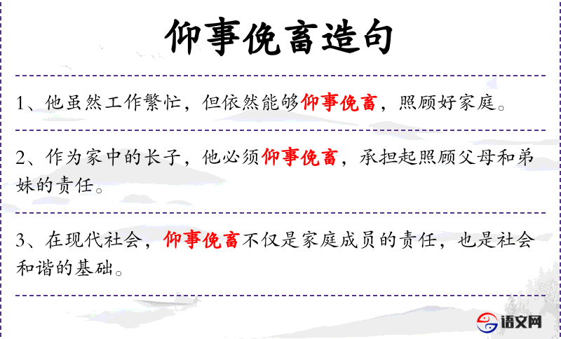 - 可以尝试用不同的句式表达相同的意思,例如:“对个人而言,仰事俛畜是必须遵守的规则,对社会成员来说,这也是一种期望。”