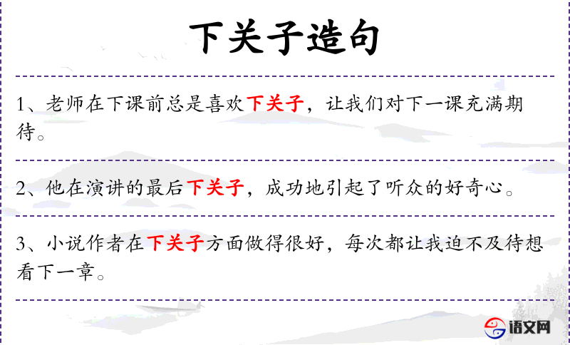 1. 【下关子】 - 送关文。关文,旧时公文名称。
