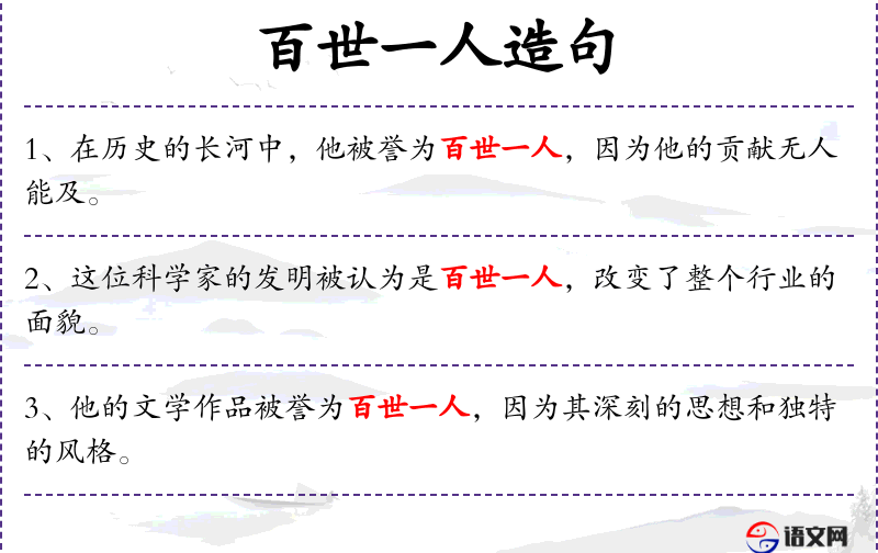 4. 【百世一人】 指极难得的人才。