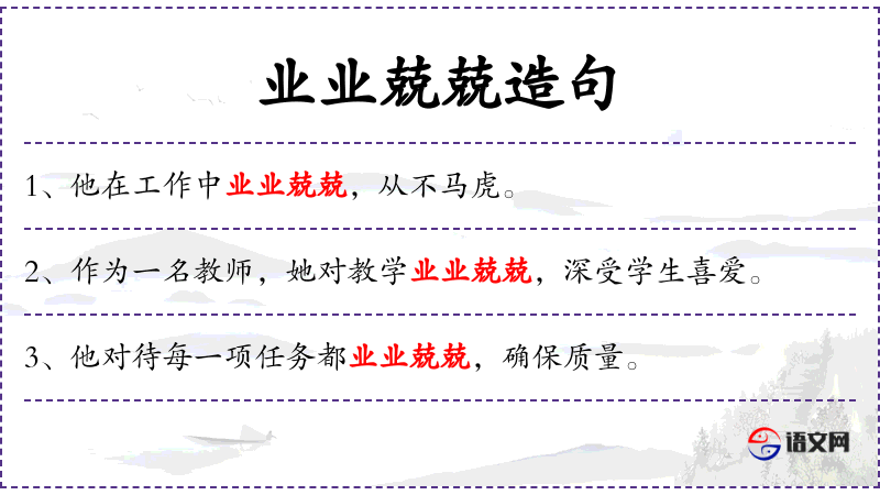 - 业业兢兢:勤勤恳恳、一丝不苟