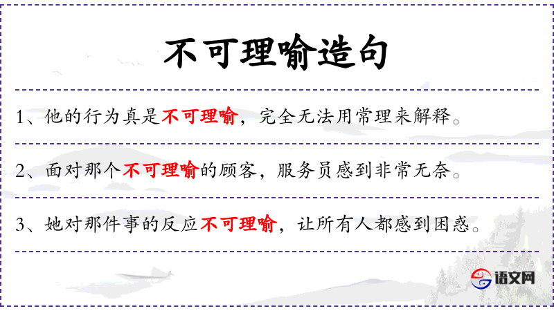 - 宾语:“不可理喻”