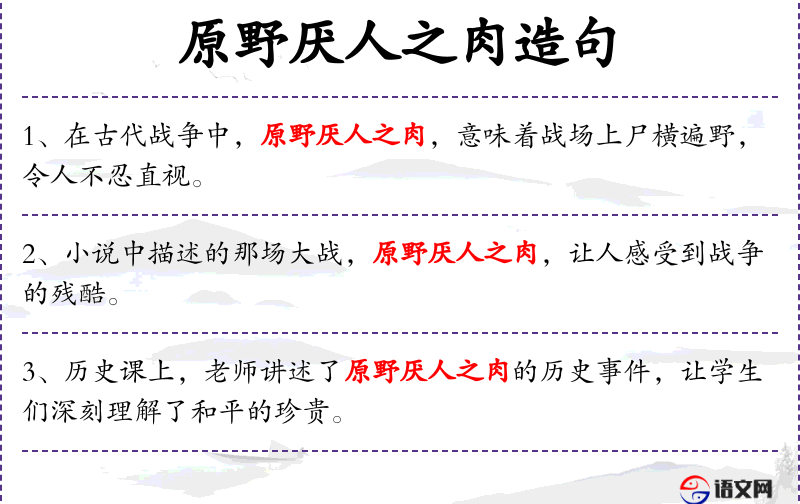 句子中的“原野厌人之肉”可能借鉴了文学或艺术中对战争残酷性的传统表达方式,强调了战争的非人道性和对生命的摧残。