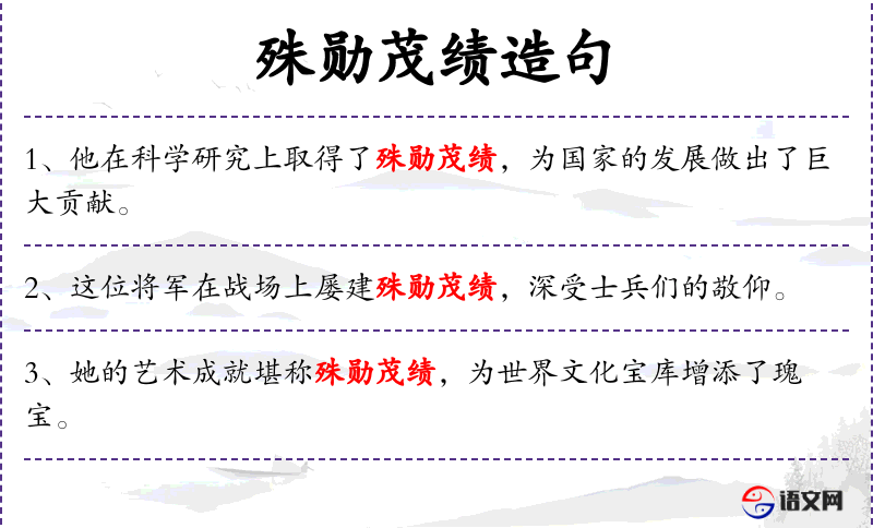1. 【殊勋茂绩】 - 卓越的功勋业绩。