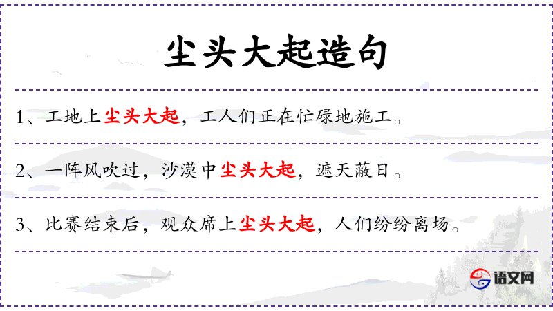 - 谓语:第一句的谓语是“尘头大起”,第二句的谓语是“正在忙碌地施工”。