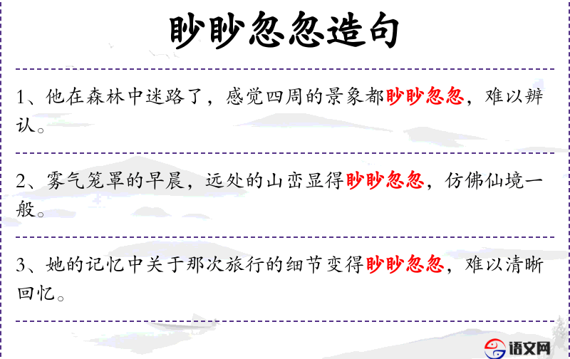 2. 【眇眇忽忽】 - 眇眇:辽远;忽忽:印象模糊。隐隐约约,看不清楚。