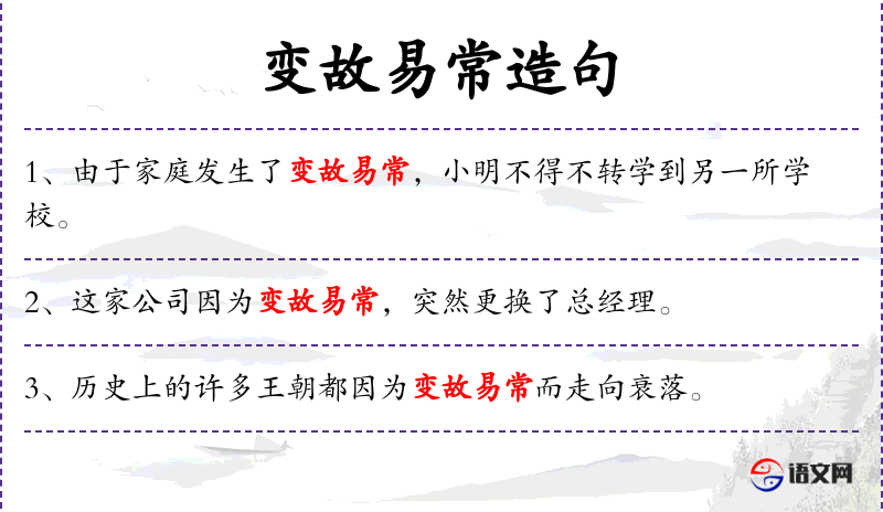 句子:“历史上的许多王朝都因为变故易常而走向衰落。”
