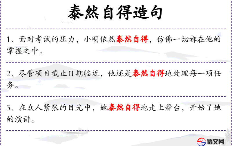 1. 【泰然自得】 指身体感到不寻常的舒适的满足。