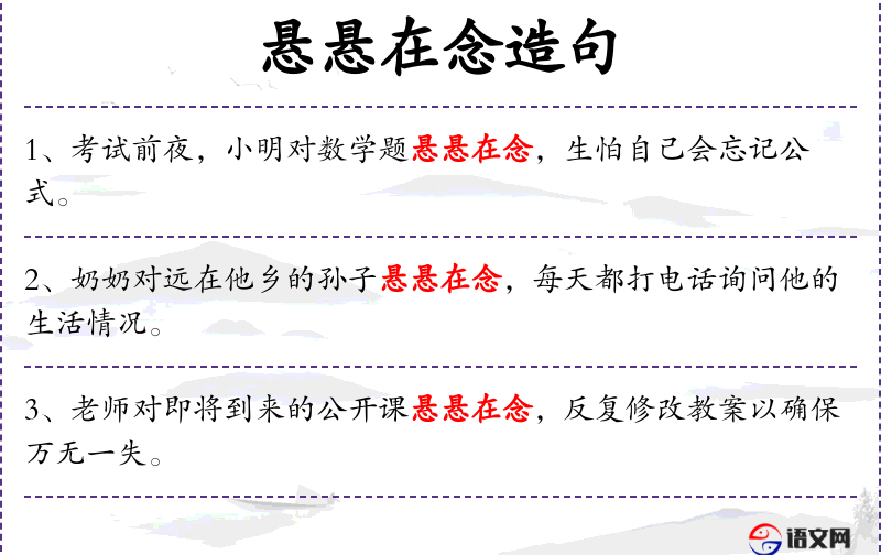 - 悬悬在念:形容心中挂念,担心某事。