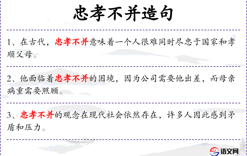 - 忠孝不并:指忠于工作和孝顺家庭难以同时兼顾。