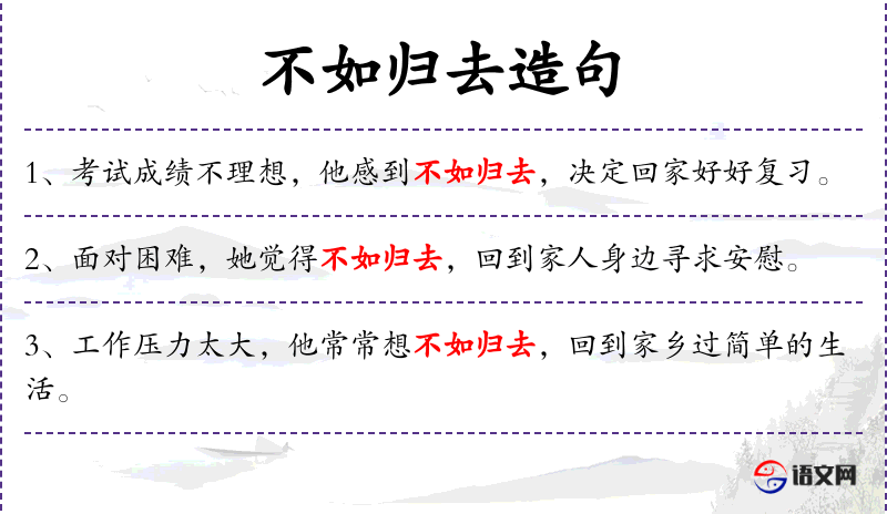 - 宾语:不如归去