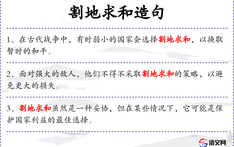 - 割地求和:指通过割让部分领土来达成和平协议。