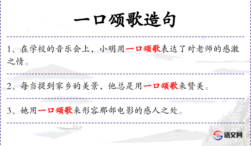 - 一口:数量词,这里用来修饰“颂歌”,表示一个完整的颂歌。