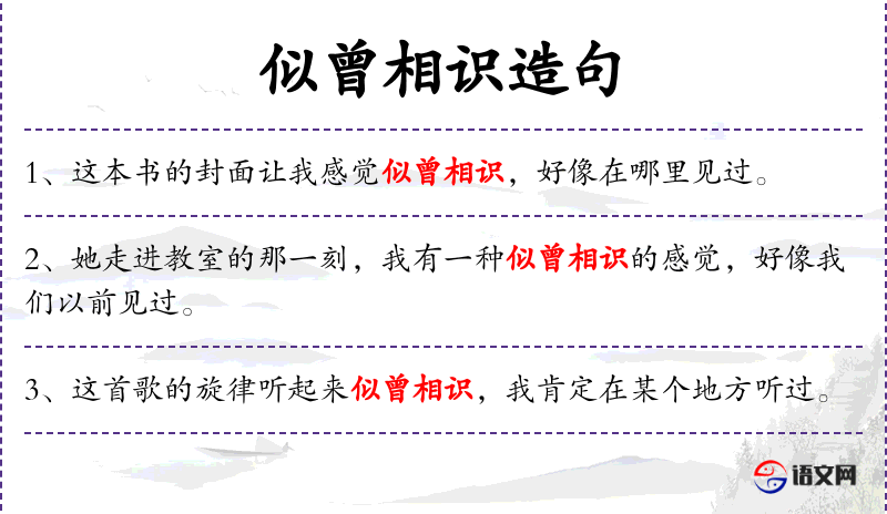 - 似曾相识:成语,形容感觉好像以前见过或经历过。