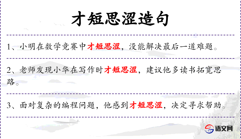 - 才短思涩:形容词短语,意指思维不够敏捷或深刻。