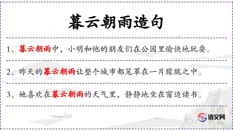 5. 【暮云朝雨】 指男女之间的情爱与约会。