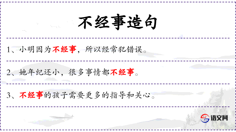 1. 【不经事】 - 谓阅历不广;不懂事。