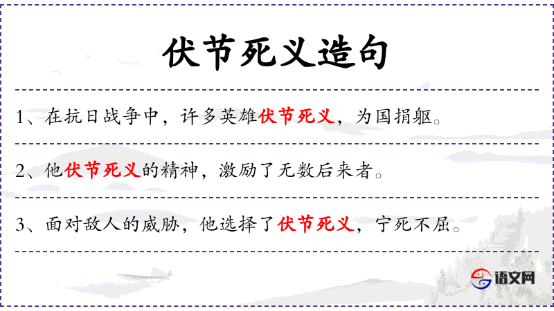 - 变式表达:“历史的河流见证了那些伏节死义的英雄,他们的事迹被世世代代传唱。”