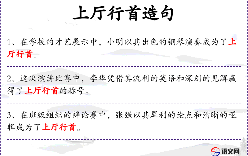 1. 【上厅行首】 - 上厅:旧指官府。元明时官妓承应官府,参拜或歌舞,以姿艺最出色的排在行列最前面。后成为名妓的通称。