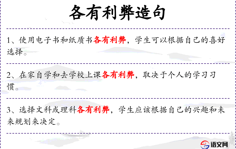 - 各有利弊:固定短语,表示每种方式都有其优点和缺点。