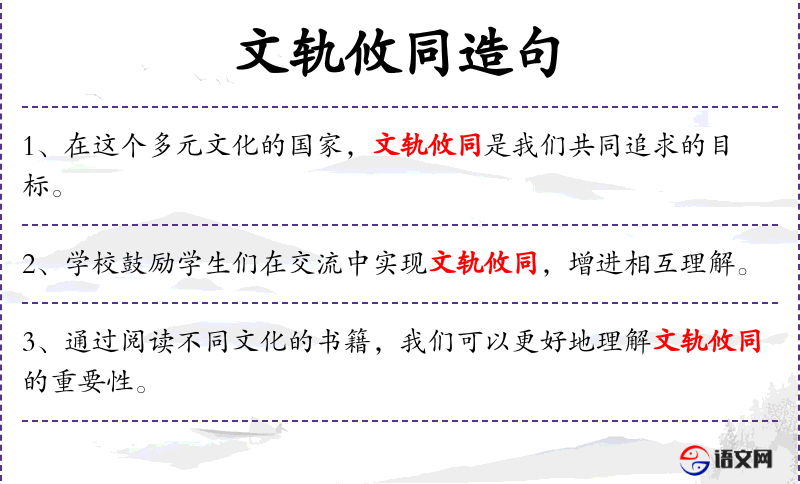 句子:“通过阅读不同文化的书籍,我们可以更好地理解文轨攸同的重要性。”
