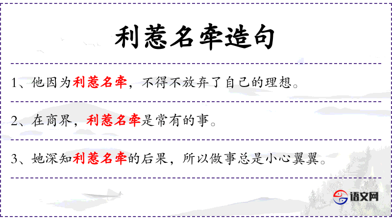 - 利惹名牵:指因为追求利益和名声而导致的牵连和困扰。