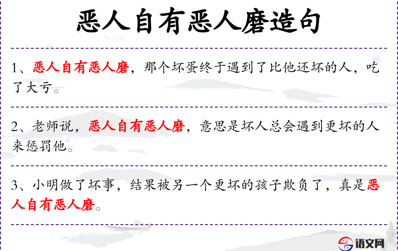 - “恶人自有恶人磨”是一个成语,源自民间谚语,反映了人对因果报应的信仰。