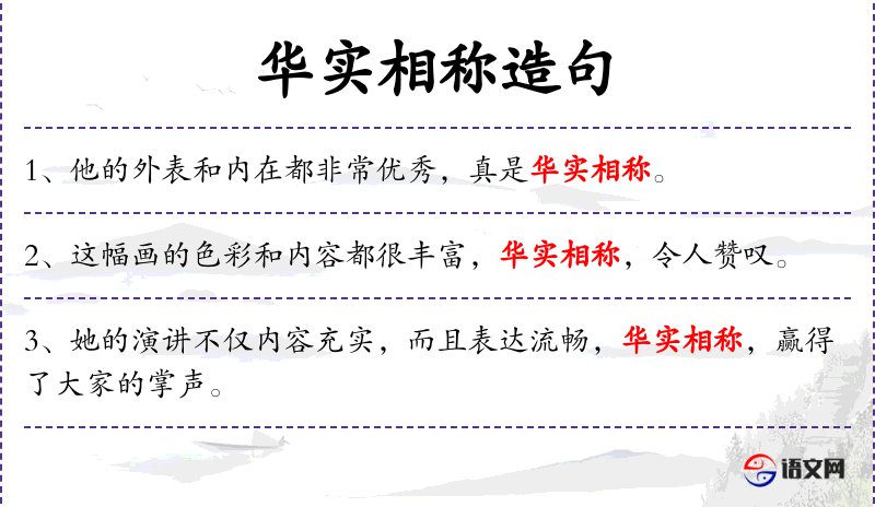 - 华实相称:外表和内在相匹配,即形式和内容一致