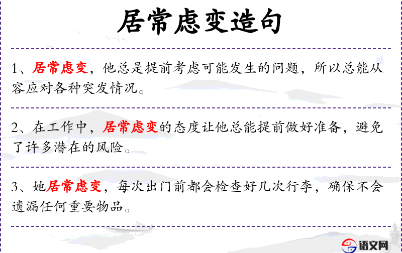 句子:“居常虑变,他总是提前考虑可能发生的问题,所以总能从容应对各种突发情况。”
