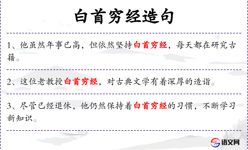 3. 【白首穷经】 - 直至年纪老了还在钻研经籍,犹言活到老,学到老。