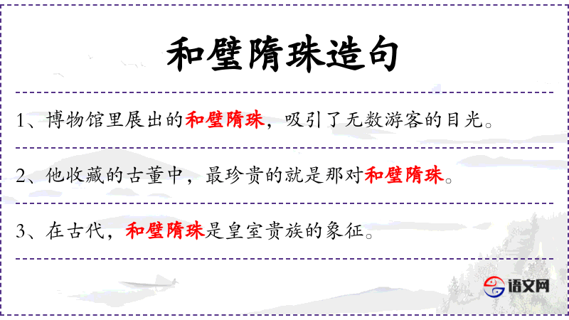 - 和璧隋珠:这个成语来源于**古代的传说,反映了古代人们对珍贵物品的崇拜和赞美。