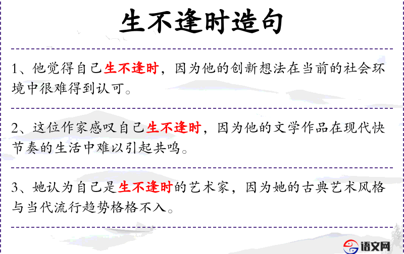 5. 【生不逢时】 生下来没有遇到好时候。旧时指命运不好。