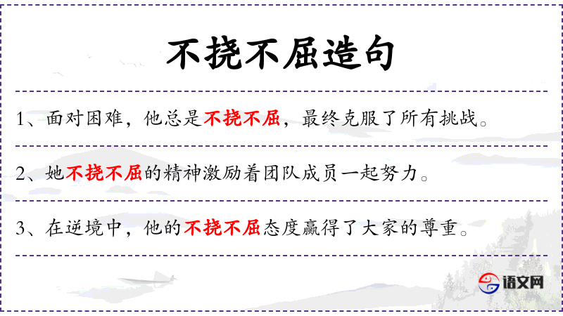1. 【不挠不屈】 - 比喻在压力和面前不屈服,表现十分顽强。