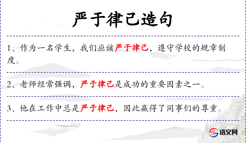 - 严于律己:严格要求自己,自律。