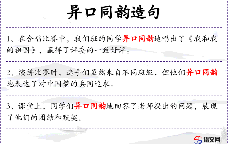 - 状语:在音乐课上、异口同韵地、展现了他们的音乐才华
