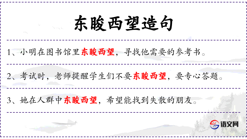 - 东睃西望:左顾右盼、四处张望