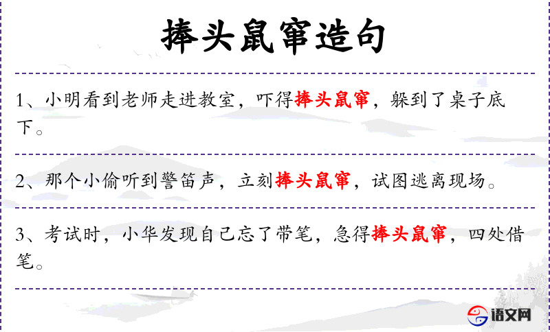 - 谓语:捧头鼠窜,寻找