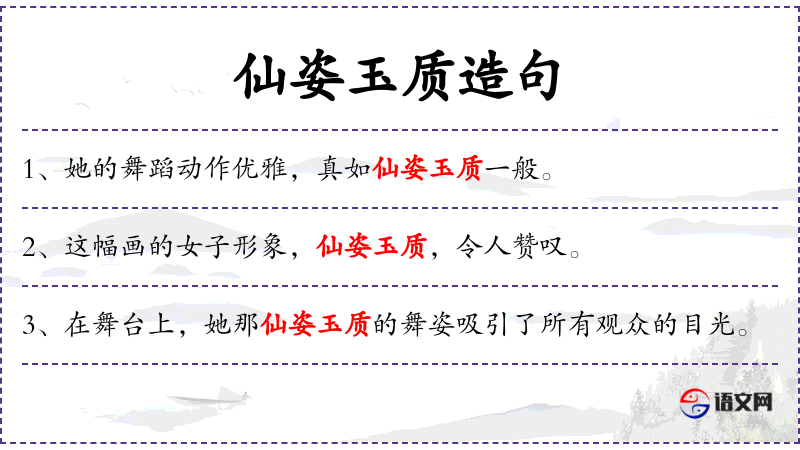 - 仙姿玉质:在**文化中,仙女和玉石都是美好和高贵的象征。