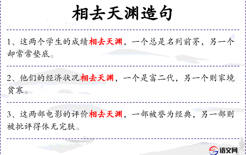 3. 【相去天渊】 - 天渊:高天和深渊。比喻二者相隔极远,差别极大。