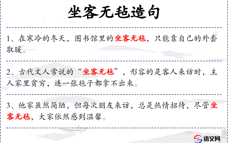 - “坐客无毡”反映了传统**社会中待客之道的重要性,即使在物质匮乏的情况下,也要尽可能地招待客人。