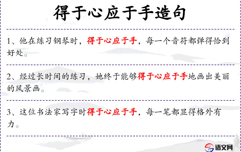 - 得于心应于手:形容做事得心应手,非常熟练。