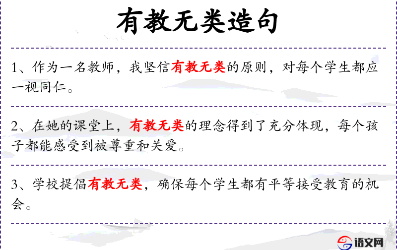 1. 【有教无类】 - 类:类别。不管什么人都可以受到教育。