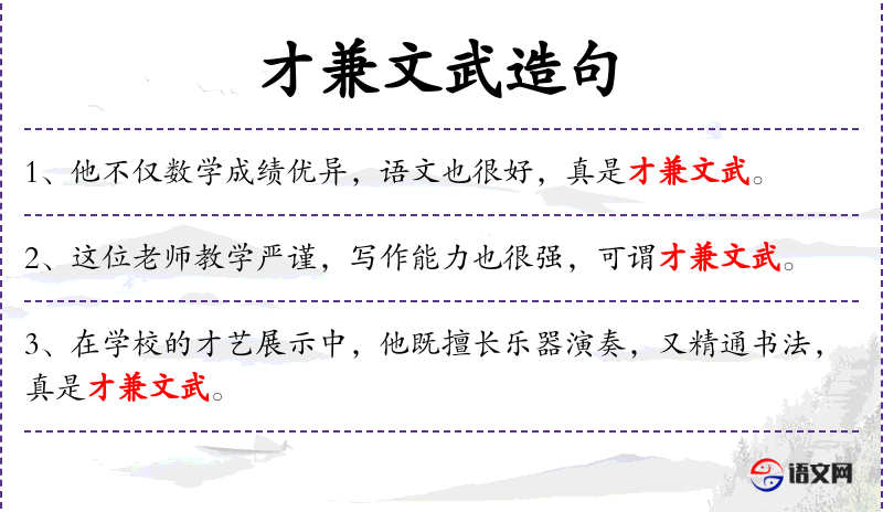 - 文化背景中,“才兼文武”是一个褒义词,常用来赞美一个人的多方面才能。