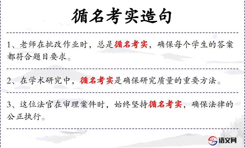 - 循名考实:按照名称或名义来考察实际内容,确保名实相符。