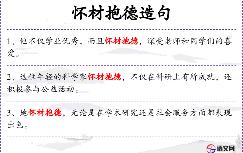 - “怀材抱德”是**传统文化中对人的高度评价,强调才能与德行的结合。