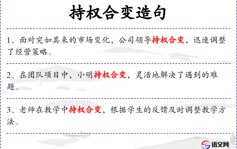 - 持权合变:指在辩论中灵活运用自己的权利和策略,以适应变化的情况。