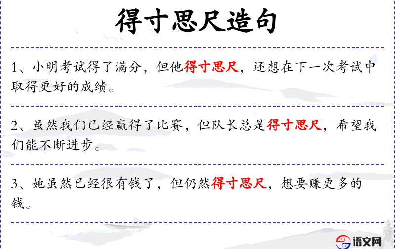- 得寸思尺:这个成语源自古代的度量衡,反映了人对不断进取和自我超越的文化价值观。