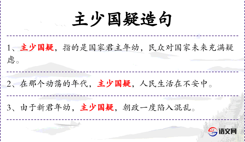 - 主少国疑:指君主年幼或无能,国家内部对领导层的不信任。