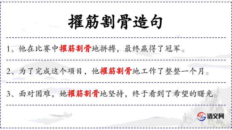 - 擢筋割骨:形容非常艰苦的努力,比喻付出极大的代价。