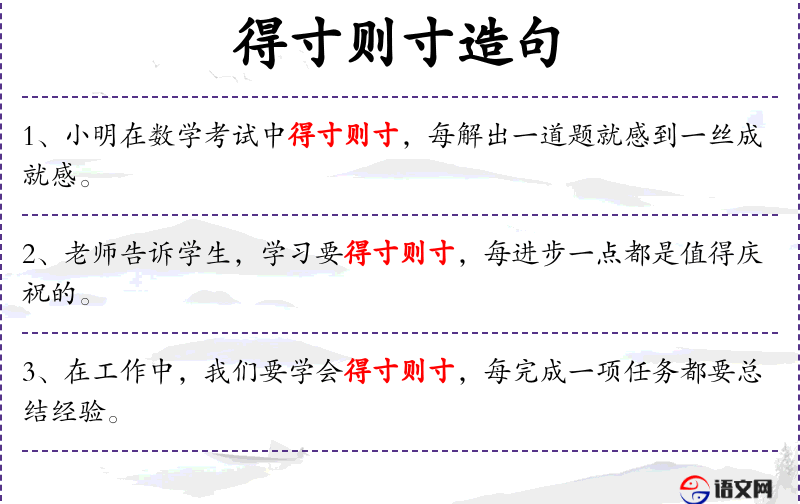 - 得寸则寸:这个成语反映了**人对于满足和进步的一种态度,即不贪多,满足于现状,但同时也在不断进步。