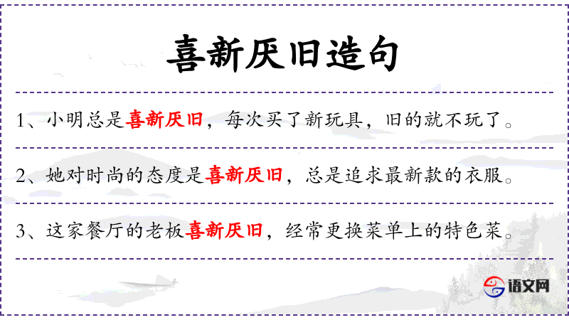 - 文化背景:在**文化中,“喜新厌旧”通常带有贬义,暗示不稳定或不忠诚。